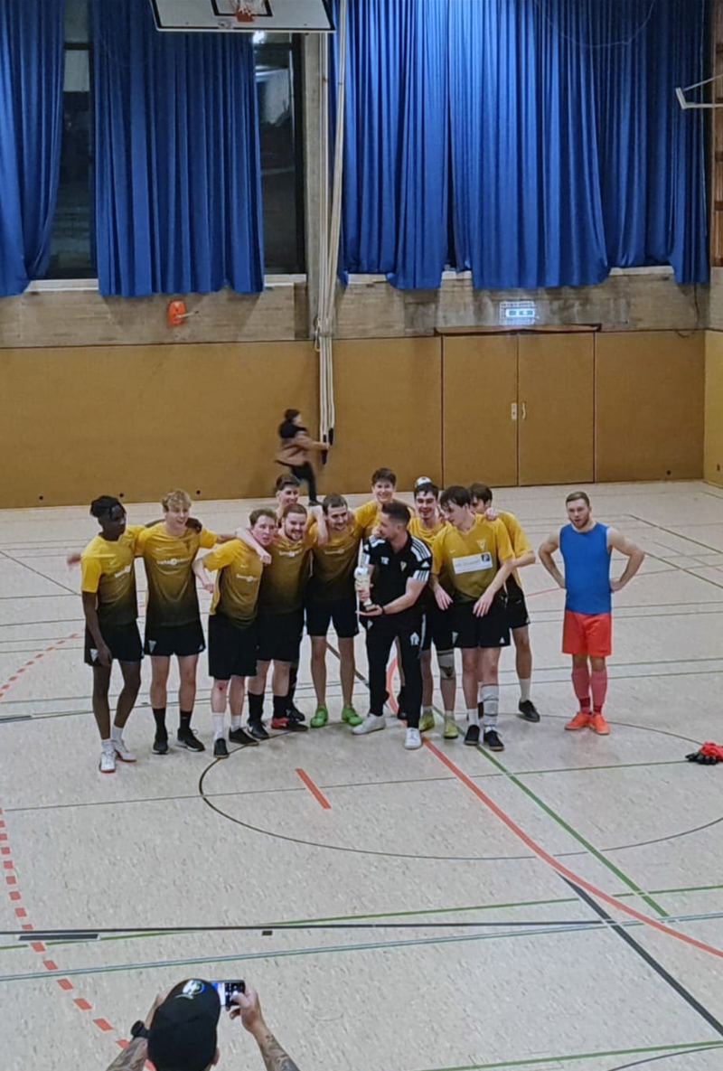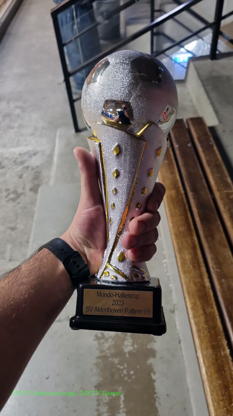 Am Sonntag, 17.12.2023, trat unsere Zwote zum letzten Event in diesem Jahre an. Man war zu Gast beim B-Liga Hallenturnier des SV Aldenhoven-Pattern. Bereits um 11:30 Uhr traf sich die Truppe zur Vorbesprechung. Coach Chris Baier machte unmissverständlich klar, dass obwohl es „nur “ ein Hallenturnier ist, man den ganzen Sonntag opfert um den Pokal mit nach Haaren zu nehmen. „Warum sollte ich sonst an einem Turnier teilnehmen wenn nicht um es zu gewinnen?“ richtete er die Frage direkt an die Truppe. Man startete gut vorbereitet in die Gruppenhase und konnte umgehend verdient mit 2 Siegen gegen Frenz und Jülich starten. Nach einen verdienten Essenspause kam die Truppe in Spiel 3 sogar nicht in Tritt und musste sich völlig verdient Ederen geschlagen geben. Es galt also einen Sieg im letzten Spiel gegen Beggendorf zu holen, um den Gruppensieg einzufahren. Hier konnte man an die Leistung der ersten beiden Spiele anknüpfen und wieder dreifach Punkten!