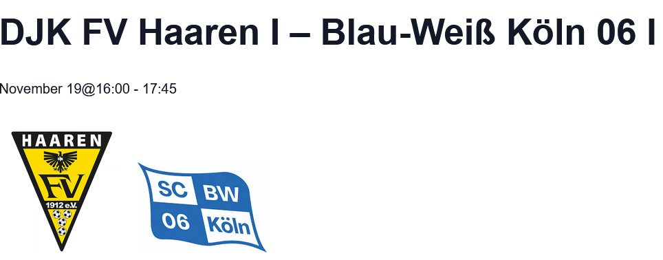 19.November 2022 Anstoß:16:00 Uhr in der „Schlenter Arena“ DJK FV Haaren I – Blau-Weiß Köln 06 I 2:3 n.V. Die DJK FV Haaren unterliegt BW Köln in der zweiten