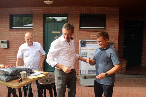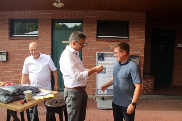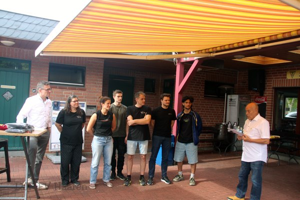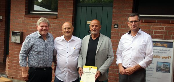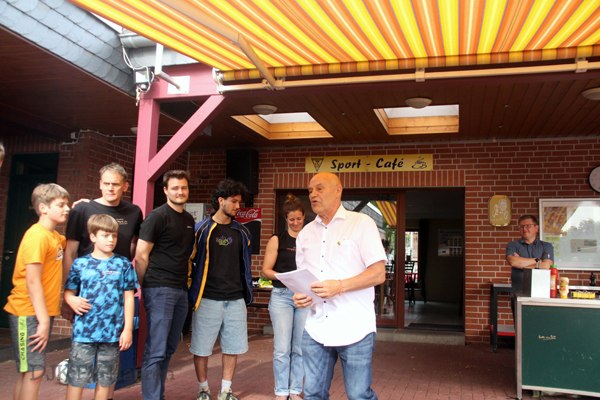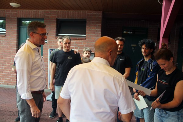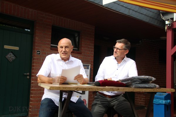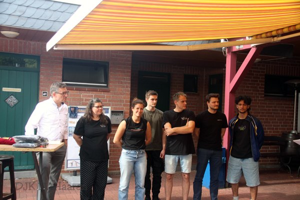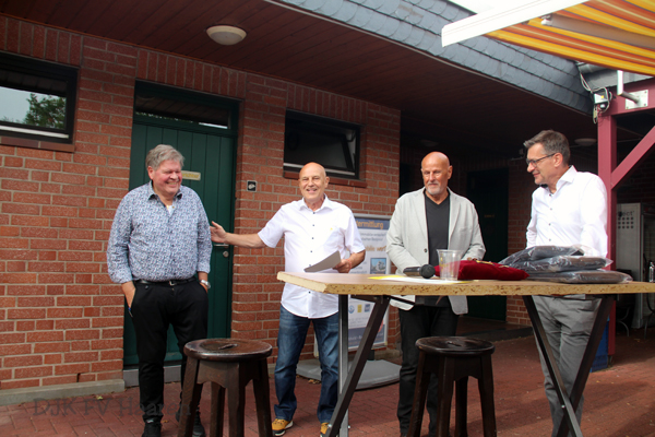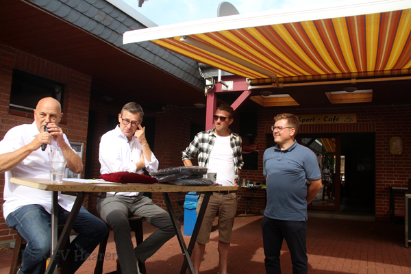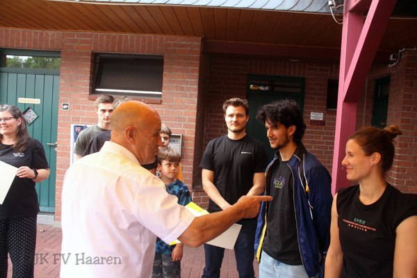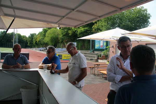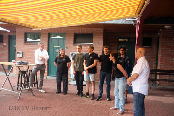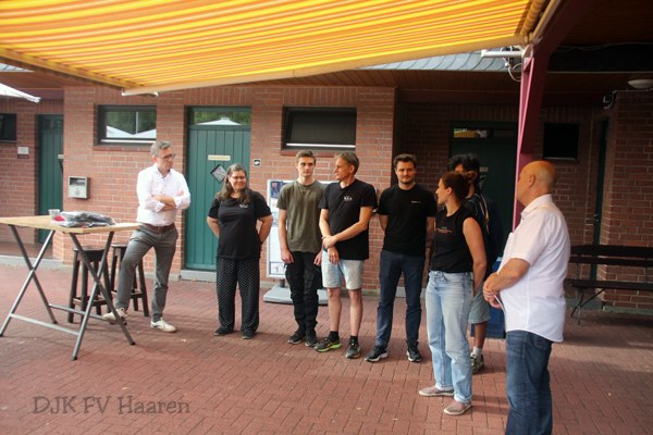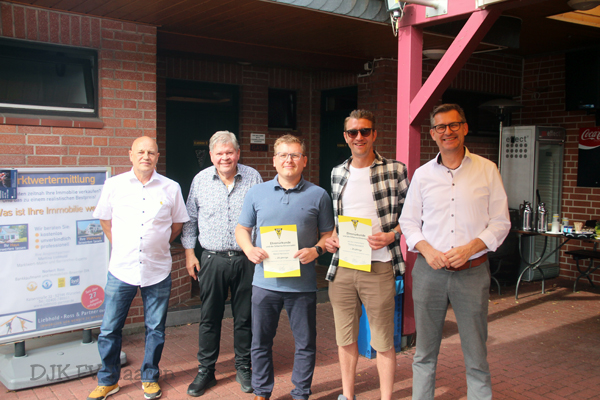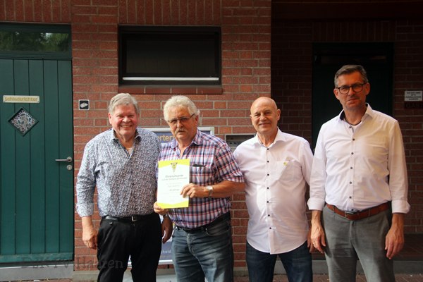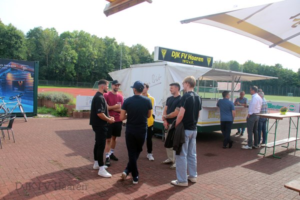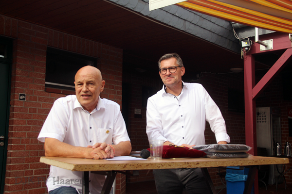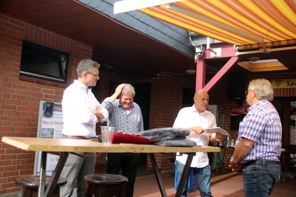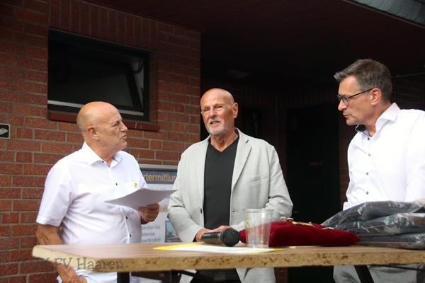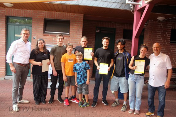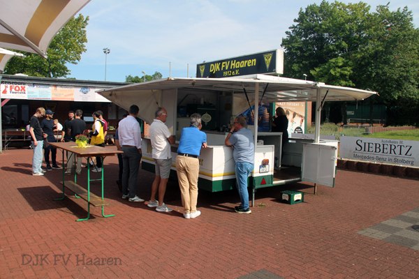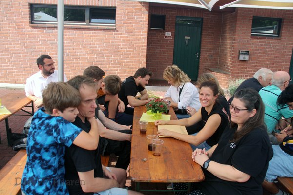 Am gestrigen Samstag feierte der DJK FV Haaren, im Reiner Breier Heim, seinen Vereinsehrentag und bedankte sich bei den zu Ehrenden für ihre Treue und für gute sportliche Leistungen. Bei einem wunderschönen, sommerlichen Nachmittag trafen sich Aktive, Inaktive und einige DJK FV Legenden, bei einem kühlen Bier und einer leckeren Bratwurst. Der führenden Vorstand Adi Hermanns, Bernd Lohmüller und Karl Bellefroid erzählten so manche Geschichten über die zu ehrenden, was immer wieder gut ankommt. Thomas Kammerich und Marcel Hermanns ( 25 Jahre-Silberne Ehrennadel), Peter Bellefroid (40 Jahre – Goldene Ehrennadel). Manfred Kerres ,(70 Jahre Vereinsmitglied), wurde von den Anwesenden laut gefeiert. Sein Herz schlägt 70 Jahre für die Schwarz-Gelben, was in der heutigen Zeit eine Seltenheit ist.