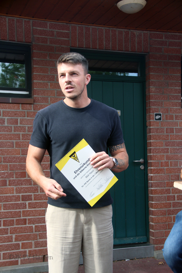 Maik Haas, er bestritt 250 Spiele für den DJK FV Haaren, wurde mit der Silbernen Ehrennadel, für seine Treue geehrt. Danke Maik auch für Deine lieben Worte über den DJK FV Haaren.
