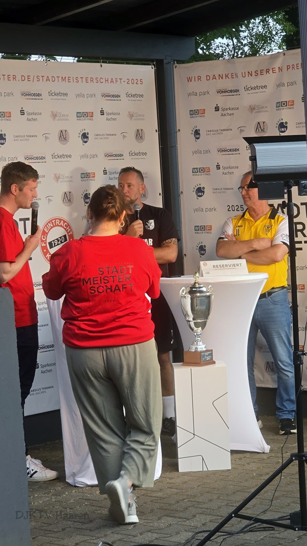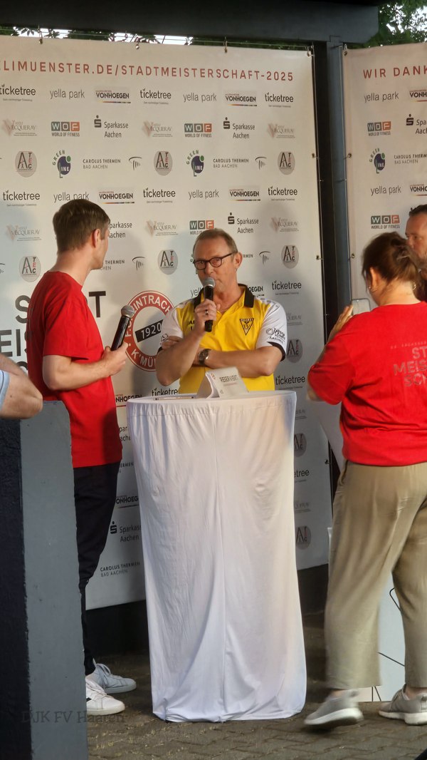 6. August 2025 Halbfinale Stadtmeisterschaft: DJK FV Haaren I – SV Eilendorf I 0:3 08.August 2025 Anstoß:18:30 Uhr Unsere neue Mannschaft zeigte ein sehr gutes Spiel, läßt aber leider zu viele Chancen aus!Kopf hoch und nach vorne schauen! Es spielten: r. 1 Schmitz, Timo TW ;99 Wilkens, Yannick TW ;3 Harder, Cord ; 5 Rüth, Dominik ;6 Schmitz, Tim ;8 Haass, Maik ;9 Gouider, Mohamed 15.08.1989 0490-3883 10 Szczyrba, Peter C ;11 Klasen, Kevin ;12 Specht, Joel ;14 Foerster, Alexander; 15 Benyamani, Mohamed ;16 Hamid, Osman ;18 Perez Schwartz, Pablo Cesar ; 27 Lohmüller, David ;28 Youssef, Assla ;32 Sasu, Cliff Hubert ; AUTOR:Adrian HermannsKATEGORIE:1. Mannschaft , Allgemein , Berichte 1. Mannschaft , Fußball