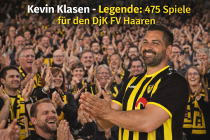 Kevin Klasen, ein exzellenter Fußballspieler und ein ganz besonderer Mensch. Er hat das 475 .Spiel in der 1. Mannschaft geschafft und sein erstrebtes Ziel erreicht. Ich kann mich noch ganz genau an das Gespräch mit Baesweiler erinnern, wir konnten aber nicht ahnen, dass er einmal Vereinsgeschichte schreiben wird.