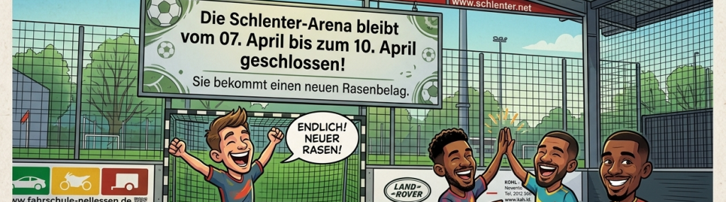 Die Schlenter-Arena wird vom 7. April bis zum 10. April 2026 vorübergehend geschlossen. Der Grund für diese Schließung ist erfreulich: Die Outdoorhalle erhält einen komplett neuen Bodenbelag. Dieser moderne Belag soll dafür sorgen, dass das Spielen künftig noch mehr Freude bereitet und die Qualität des Spielfeldes verbessert wird.