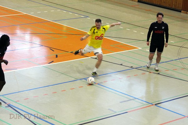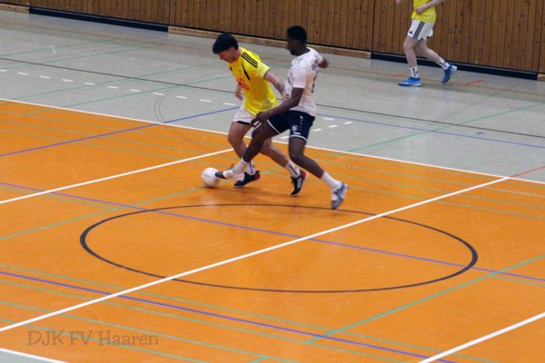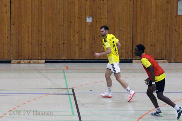 In der Vorrunde setzte sich unsere Mannschaft souverän gegen Germania Freund, Bosna Aachen und Borussia Brand durch. Das Spiel gegen Eintracht Verlautenheide, einen Landesligisten und befreundeten Verein, war besonders spannend und ausgeglichen. Beide Teams lauerten auf Fehler des Gegners. Schließlich unterlief einem Spieler von Haaren ein Missgeschick, das Verlautenheide zum Tor nutzte. Im direkten Gegenzug hatte Haaren die Chance zum Ausgleich, doch der starke Torwart von Verlautenheide vereitelte diese Möglichkeit. Das 2:0 mit dem Schlusspfiff stellte letztlich nur noch das Endergebnis dar.