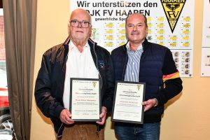 Der DJK FV Haaren verlieh, Hans Peter Schlenter und Johannes Schlenter, die Ehrenmitgliedschaft, wegen besonderer Verdienste für den DJK FV Haaren. Seit 10 Jahre unterstützt die H.P.Schlenter GmbH unseren Verein. Die 1. Mannschaft bekommt regelmäßig neue Trikots oder Trainingsanzüge und bis zur Coronakrise fand jedes Jahr ein großes Jugendturnier statt, gesponsert von der H.P. Schlenter GmbH. Auch beim Bau der neuen Freilufthalle, der „Schlenter Arena“, unterstützte uns die Firma und erwarb, für eine lange Zeit, die Namensrechte.